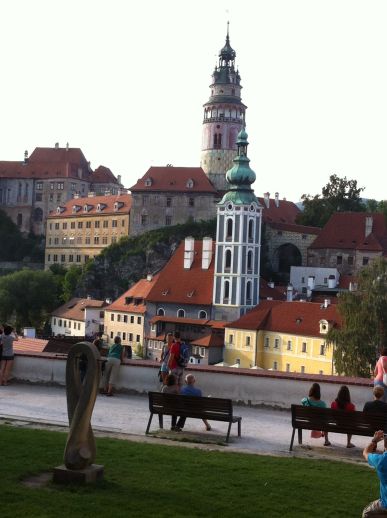 La ville de Český Krumlov est un peu comme Besançon, entourée par les méandres d'une rivère, et surmontée par une citadelle, le château.