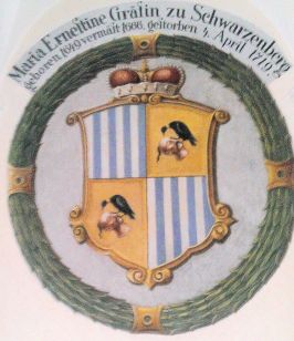 Les armes des propriétaires du château montrent une tête de turc en train de se faire déguster par un gentil corbeau, preuve que les Schwartzenberg, heureux propriétaires étaient bons pour les animaux.  |