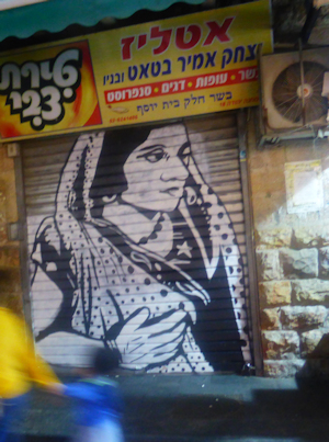 Les boutiques du marché Ben Yehuda à Jérusalem sont protégées lorsqu'elles sont fermées par des rideaux métalliques. On les a peint généralement avec des portrait de personnalités