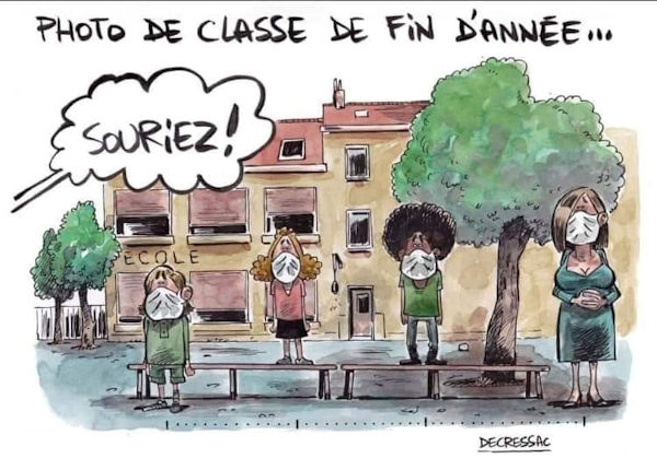 Les étudiants n'ont plus de cours "en présentiel", c'est grâce à des applications comme Zoom qu'ils peuvent suivre des cours à distance, leur professeur parle devant un ordinateur où il voit son cours... il ignore si ses élèves dorment, font des sudokus, se grattent le nez ou suivent avec passion. Dans les lycées et collèges, on tente de réduire les classes, des élèves sont là, d'autres à la maison, on demande aux professeurs de faire des cours en double, le professeur est masqué, et change de classe à chaque cours. Les sports sont supprimés, et la nervosité des élèves rend le travail très pénible, et très risqué, avec 180 élèves dans la semaine, le professeur voit plus que les six personnes autorisées à table pour le repas de Noël