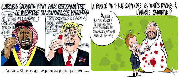 ➔ L'affaire est loin d'être close, en ce moment, le Royaume d'Arabie est à la recherche d'un lampiste pour lui mettre le crime sur le dos, mais les dégâts sur l'image du Royaume sont déjà importants, il semble que l'Europe soit tombée dans le piège, car c'est tous les jours que des opposants sont sauvagement torturés et assassinés en Turquie, en Iran, en Egypte, au Yemen ou en Arabie. En prenant trop à coeur cette affaire particulière et en méprisant les atteintes au droit de l'homme ailleurs, l'Europe prend parti, et il n'est pas sûr qu'elle soutienne ses meilleurs amis.