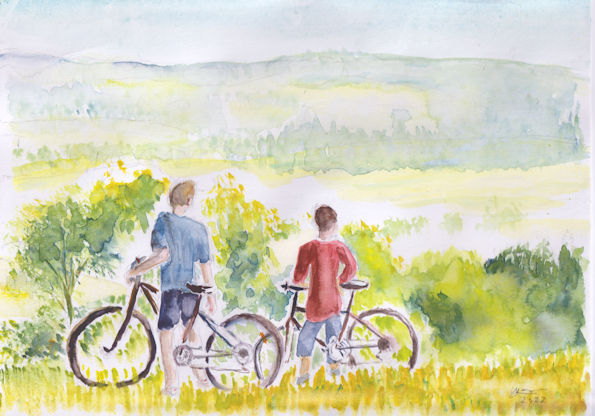 Lors d'une promenade dans le jura, j'ai été frappé par la beauté du paysage, et de deux ados qui l'admiraient. En fait, ces ados me rappelaient ma jeunesse, où je partais avec Gérard, mon petit frère, ou avec Michel Larger, copain de classe faire de belles promenades dans les montagnes.