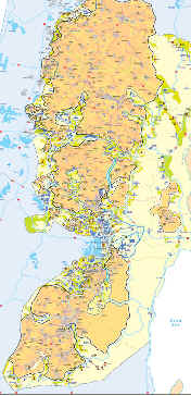 Voici la carte la plus actuelle fournie par le site Palestinien Stop the wall Il semble que la partie Ouest corresponde assez bien aux informations venues d'Israël, mais que l'encerclement à l'Est n'est pas affiché par le gouvernement de M Sharon. La carte du ministère de la défense ne va pas jusqu'au Jourdain dans sa partie Sud, ce qui laisserait supposer une certaine duplicité. Si l'ambassadeur d'Israël dit la vérité, pourquoi le ministère de la défense ne l'affiche-t-il pas ? |