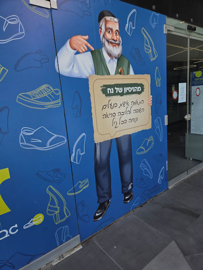 Je n'ai pas changé d'avis sur l'urbanisme de la ville, Beth Shémesh est une immense banlieue, avec plusieurs centres commerciaux dispersés. On vient d'en inaugurer un bien grand pas très loin de chez ma fille, avec un super marché "Rami Lévy". J'ai trouvé dans le centre cette vitrine qui m'a plu :