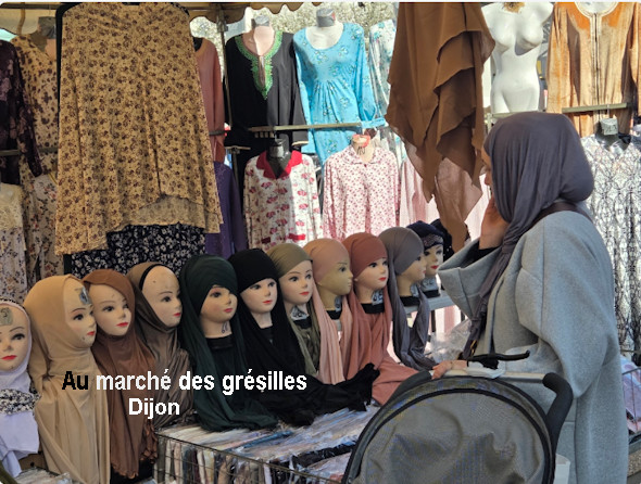 ➔ Loin du centre ville, il existe des marchés avec tout ce qui vient du soleil, des fruits et légumes méditerranéens, et des clients ayant la même origine. Les prix sont nettement moins chers, et on y trouve peu de producteurs locaux. Côté commerce non alimentaire y a tout sur place, avec aussi le nécessaire pour les bons musulmans. Bijoux orientaux ruisselants d'or, djellabas, hijabs, et en été des quêteurs venus demander l’aumône pour construire de nouvelles mosquées.