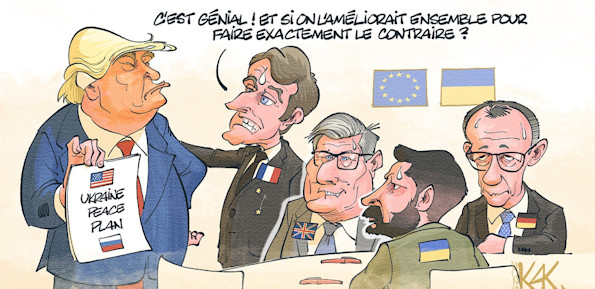 Mais face à cette capitulation, les Européens, en particulier Emmanuel Macron, président de la France, Friedrich Merz, chancelier d'Allemagne, Keir Starmer premier ministre anglais ont rédigé avec le soutien de Volodimir Zelinsky une contreproposition également en 28 points que vous trouverez ici en anglais, et ici en français.
