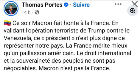 VENEZUELA : BONNES NOUVELLES ! Le premier acte de la nouvelle présidente par interim, Delcy Rodriguez, expulse les diplomates du gouvernement français après que Macron ait soutenu l'invasion étasunienne. Bravo Mme la Présidente !