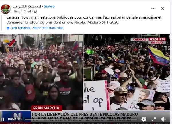 Ainsi donc, face à la condamnation planétaire de cette opération mafieuse et l'exigence de libération de Nicolas Maduro et sa femme, face à un gouvernement vénézuélien Chaviste réaffirmé et soutenu dans la rue, face à la création d'une coalition de défense des pays progressistes d'Amérique du Sud et des Caraïbes, l'Empire terroriste trumpiste est devenu en une nuit pour tout démocrate, indéfendable, tel un repaire de barbares à la parole fourbe et au comportement de prédateur, qui fait craindre au monde le pire, même chez nous les européens. Malgré le danger permanent que cette engeance barbare représente, son avenir est désormais compté. C'est pourquoi, je proclame : ILS REVIENDRONT ! MT